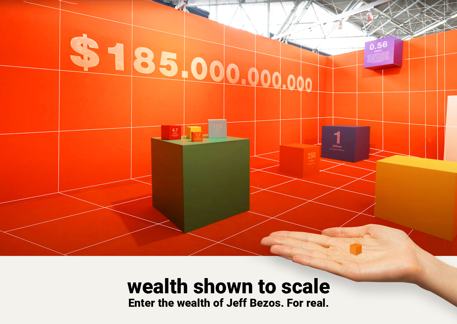 De kunstinstallatie ‘Wealth Shown to Scale’ maakt ongelijkheid zichtbaar en confronteert bezoekers met de extreme verschillen in rijkdom. Het doel is om een fysieke ervaring te creëren, bewustwording te vergroten en maatschappelijke discussie aan te wakkeren over economische rechtvaardigheid en de verdeling van middelen.